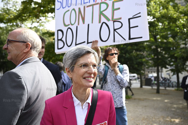 Légende : Rassemblement de la rédaction en grève du Journal du Dimanche (JDD) aux abords de de l'Assemblée nationale, contre l'arrivée à sa tête de Geoffroy Lejeune, ex-directeur de la rédaction du magazine d’extrême droite Valeurs actuelles. Sandrine Rousseau, députée /// Gathering of the striking editorial staff of the Journal du Dimanche (JDD) near the National Assembly, against the arrival at its head of Geoffroy Lejeune, former editor of the far-right magazine Valeurs actuelles. Sandrine Rousseau, MP - Paris - 19/07/2023 - Photo © Lionel Préau +33 (0)6 68 12 83 77