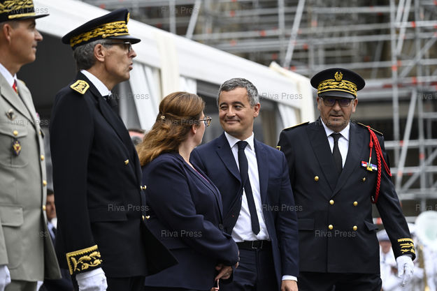 Légende : Gérald Darmanin, ministre de l'Intérieur et des Outre-Mer, se rend à la Prefecture de Police de Paris pour la Cérémonie du 79ème anniversaire de la Libération de Paris. En présence de Sonia Backès, secrétaire d'Etat chargée de la Citoyenneté, Laurent Nunez, préfet de police de Paris /// Gérald Darmanin, Minister of the Interior and Overseas, goes to the Prefecture of Police of Paris for the Ceremony of the 79th anniversary of the Liberation of Paris. With Sonia Backès, junior minister for Citizenship, Laurent Nunez, Paris police chief - Paris - 24/08/2023 - Photo © Lionel Préau +33 (0)6 68 12 83 77