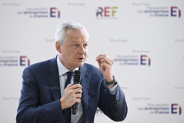 Légende : Rencontre des Entrepreneurs de France (REF) du MEDEF (Mouvement des entreprises de France). Bruno Le Maire, ministre de l'Economie, des Finances et de la Souveraineté industrielle et numérique /// Meeting of Entrepreneurs of France (REF) of the MEDEF (Movement of French companies). Bruno Le Maire, Minister of Economy, Finance and Industrial and Digital Sovereignty - Paris - 29/08/2023 - Photo © Lionel Préau +33 (0)6 68 12 83 77