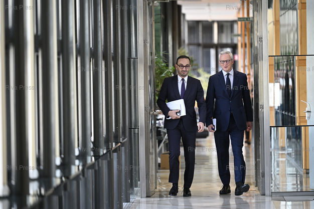 Légende : Bruno Le Maire, ministre de l'Economie, des Finances et de la Souveraineté industrielle et numérique, et Thomas Cazenave, ministre délégué chargé des Comptes publics, présentent le Projet de loi de finances 2024 et la loi de programmation des finances publiques 2023-2027 /// Bruno Le Maire, Minister of the Economy, Finance and Industrial and Digital Sovereignty, and Thomas Cazenave, Junior Minister in charge of Public Accounts, present the 2024 Finance Bill and the 2023-2027 public finance programming law - Paris - 27/09/2023 - Photo © Lionel Préau +33 (0)6 68 12 83 77