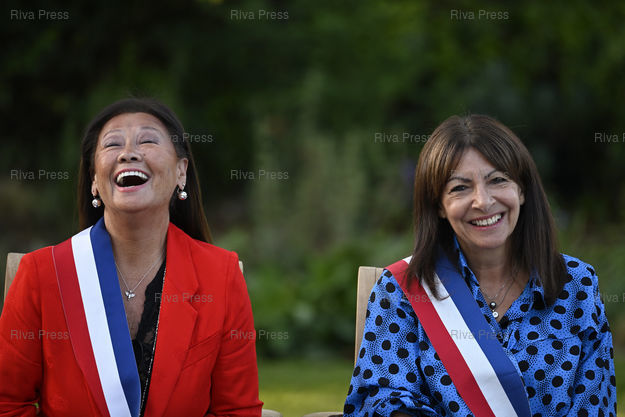 Légende : Inauguration du Jardin des Ambassadeurs - Line Renaud. Jeanne d'Hauteserre, maire du 8eme arrondissement - Anne Hidalgo, maire de Paris /// Inauguration of the Jardin des Ambassadeurs - Line Renaud. Jeanne d'Hauteserre, major of the 8th arrondissement - Anne Hidalgo, major of Paris - Paris - 02/10/2023 - Photo © Lionel Préau +33 (0)6 68 12 83 77