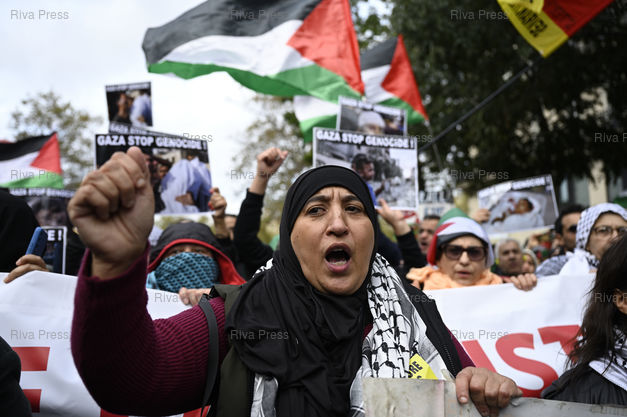 Légende : Manifestation contre la guerre entre le Hamas et Israël, et en soutien au peuple palestinien, premier défilé pro-Palestine autorisé à Paris /// Demonstration against the war between Hamas and Israel, and in support of the Palestinian people, first pro-Palestine non static demonstration authorized in Paris - Paris - 04/11/2023 - Photo © Lionel Préau +33 (0)6 68 12 83 77