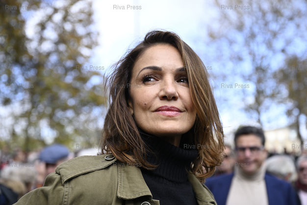 Légende : Marche silencieuse lancée par le monde de la culture pour la paix, entre l'Institut du monde arabe et le Musée de l'art et de l'histoire du judaïsme. Nadia Farès, actrice /// Silent march launched by the world of culture for peace, between the Institute of the Arab World and the Museum of the Art and History of Judaism. Nadia Farès, actress - Paris - 19/11/2023 - Photo © Lionel Préau +33 (0)6 68 12 83 77
