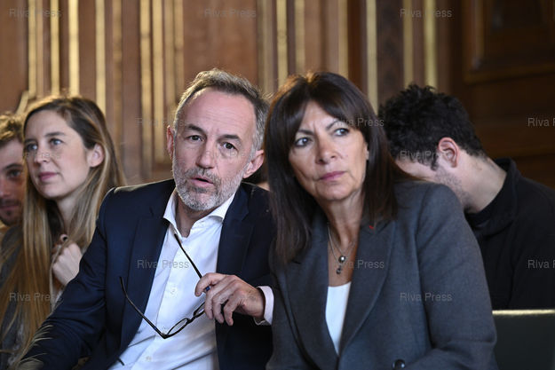 Légende : Anne Hidalgo, maire de Paris, présente le 4ème Plan Climat de Paris. Emmanuel Grégoire, Premier adjoint à la Maire de Paris - Anne Hidalgo /// Anne Hidalgo, mayor of Paris, presents the 4th Paris Climate Plan. Emmanuel Grégoire, First Deputy Mayor of Paris - Anne Hidalgo - Paris - 22/11/2023 - Photo © Lionel Préau +33 (0)6 68 12 83 77