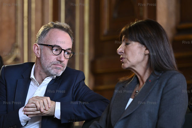 Légende : Anne Hidalgo, maire de Paris, présente le 4ème Plan Climat de Paris. Emmanuel Grégoire, Premier adjoint à la Maire de Paris - Anne Hidalgo /// Anne Hidalgo, mayor of Paris, presents the 4th Paris Climate Plan. Emmanuel Grégoire, First Deputy Mayor of Paris - Anne Hidalgo - Paris - 22/11/2023 - Photo © Lionel Préau +33 (0)6 68 12 83 77
