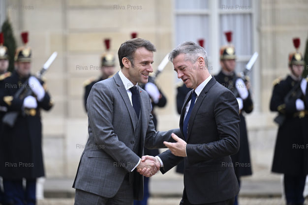 Légende : Emmanuel Macron reçoit Robert Golob, Premier ministre de la République de Slovénie, pour un déjeuner de travail au Palais de l'Elysée /// Emmanuel Macron receives Robert Golob, Prime Minister of the Republic of Slovenia, for a working lunch at the Elysée Palace - Paris - 13/12/2023 - Photo © Lionel Préau +33 (0)6 68 12 83 77