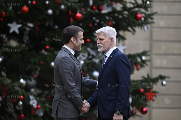 Légende : Emmanuel Macron reçoit Petr Pavel, Président de la République tchèque, au Palais de l'Elysée dans le cadre de sa visite officielle à Paris /// Emmanuel Macron receives Petr Pavel, President of the Czech Republic, at the Elysée Palace as part of his official visit to Paris - Paris - 20/12/2023 - Photo © Lionel Préau +33 (0)6 68 12 83 77