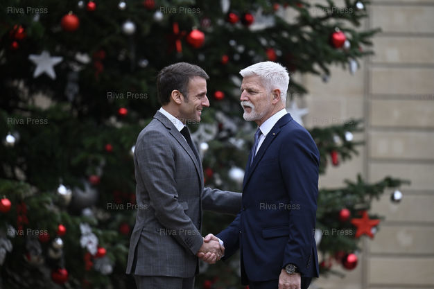 Légende : Emmanuel Macron reçoit Petr Pavel, Président de la République tchèque, au Palais de l'Elysée dans le cadre de sa visite officielle à Paris /// Emmanuel Macron receives Petr Pavel, President of the Czech Republic, at the Elysée Palace as part of his official visit to Paris - Paris - 20/12/2023 - Photo © Lionel Préau +33 (0)6 68 12 83 77