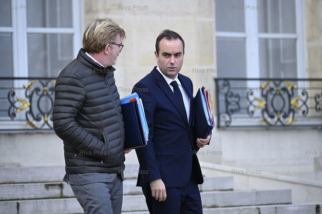 Légende : Conseil des ministres au palais de l'Elysée. Marc Fesneau, ministre de l'Agriculture et de la Souveraineté alimentaire - Sébastien Lecornu, ministre des Armées /// Cabinet meeting at the Elysee Palace. Marc Fesneau, Minister of Agriculture and Food Sovereignty - Sébastien Lecornu, Minister for the Armed Forces - Paris - 20/12/2023 - Photo © Lionel Préau +33 (0)6 68 12 83 77