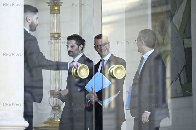 Légende : Conseil des ministres au palais de l'Elysée. Alexis Kohler, Secrétaire général de l'Elysée - Gérald Darmanin, ministre de l'Intérieur et des Outre-mer /// Cabinet meeting at the Elysee Palace. Alexis Kohler, Secretary General of the Elysee - Gérald Darmanin, Minister of the Interior and Overseas - Paris - 20/12/2023 - Photo © Lionel Préau +33 (0)6 68 12 83 77