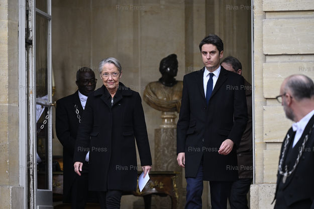 Légende : Passation des pouvoirs au poste de Premier ministre entre Elisabeth Borne et Gabriel Attal /// Handover Ceremony for the French Prime Minister between Elisabeth Borne and Gabriel Attal - Paris - 09/01/2024 - Photo © Lionel Préau +33 (0)6 68 12 83 77