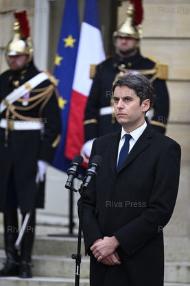 Légende : Passation des pouvoirs au poste de Premier ministre entre Elisabeth Borne et Gabriel Attal /// Handover Ceremony for the French Prime Minister between Elisabeth Borne and Gabriel Attal - Paris - 09/01/2024 - Photo © Lionel Préau +33 (0)6 68 12 83 77
