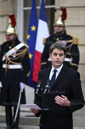Légende : Passation des pouvoirs au poste de Premier ministre entre Elisabeth Borne et Gabriel Attal /// Handover Ceremony for the French Prime Minister between Elisabeth Borne and Gabriel Attal - Paris - 09/01/2024 - Photo © Lionel Préau +33 (0)6 68 12 83 77