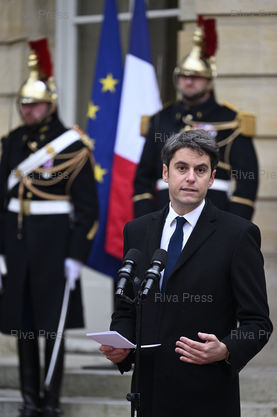 Légende : Passation des pouvoirs au poste de Premier ministre entre Elisabeth Borne et Gabriel Attal /// Handover Ceremony for the French Prime Minister between Elisabeth Borne and Gabriel Attal - Paris - 09/01/2024 - Photo © Lionel Préau +33 (0)6 68 12 83 77