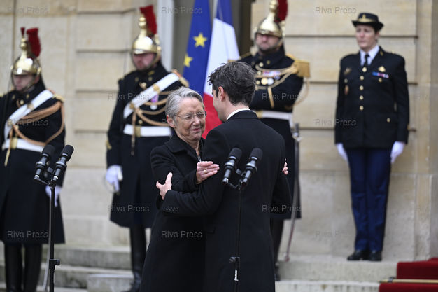Légende : Passation des pouvoirs au poste de Premier ministre entre Elisabeth Borne et Gabriel Attal /// Handover Ceremony for the French Prime Minister between Elisabeth Borne and Gabriel Attal - Paris - 09/01/2024 - Photo © Lionel Préau +33 (0)6 68 12 83 77