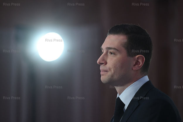 Légende : Jordan Bardella, président du Rassemblement National, député européen, présente ses voeux à la presse /// Jordan Bardella, president of the Rassemblement National, MEP, presents his best wishes for the new year - Paris - 15/01/2024 - Photo © Lionel Préau +33 (0)6 68 12 83 77