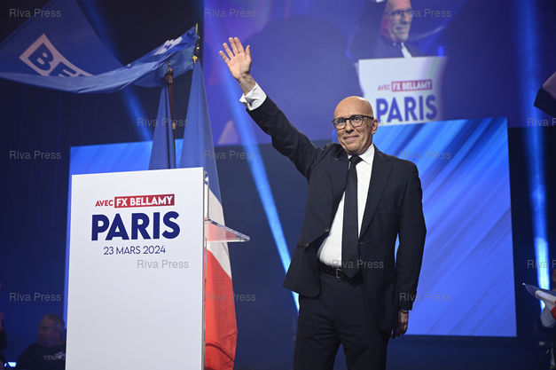 Légende : François-Xavier Bellamy, député européen, lance la campagne des Républicains pour les élections européennes lors d'un meeting. Eric Ciotti, président de LR /// François-Xavier Bellamy, MEP, launches the campaign of Les Republicains for the European elections during a meeting. Eric Ciotti, President of LR - Aubervilliers - 23/03/2024 - Photo © Lionel Préau +33 (0)6 68 12 83 77