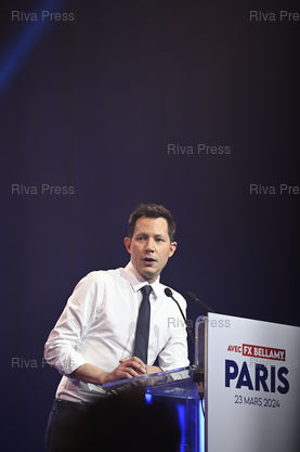 Légende : François-Xavier Bellamy, député européen, lance la campagne des Républicains pour les élections européennes lors d'un meeting. François-Xavier Bellamy /// François-Xavier Bellamy, MEP, launches the campaign of Les Republicains for the European elections during a meeting. François-Xavier Bellamy, MEP - Aubervilliers - 23/03/2024 - Photo © Lionel Préau +33 (0)6 68 12 83 77