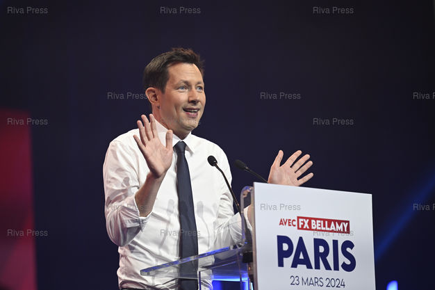 Légende : François-Xavier Bellamy, député européen, lance la campagne des Républicains pour les élections européennes lors d'un meeting. François-Xavier Bellamy /// François-Xavier Bellamy, MEP, launches the campaign of Les Republicains for the European elections during a meeting. François-Xavier Bellamy, MEP - Aubervilliers - 23/03/2024 - Photo © Lionel Préau +33 (0)6 68 12 83 77