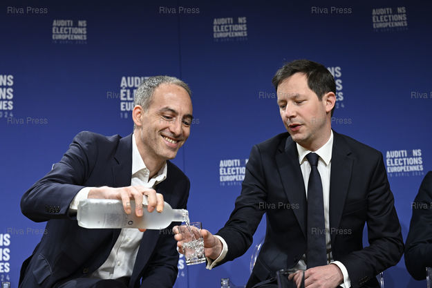 Caption : Le MEDEF auditionne les têtes de listes aux élections européennes. Raphaël Glucksmann (PS-Place publique) - François-Xavier Bellamy (LR) /// The MEDEF, first network of entrepreneurs in France, is auditioning the heads of the lists in the European elections. Raphaël Glucksmann (PS-Place publique) - François-Xavier Bellamy (LR) - Paris - 18/04/2024 - Photo © Lionel Préau +33 (0)6 68 12 83 77