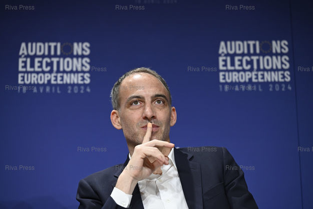 Légende : Le MEDEF auditionne les têtes de listes aux élections européennes. Raphaël Glucksmann (PS-Place publique) /// The MEDEF, first network of entrepreneurs in France, is auditioning the heads of the lists in the European elections. Raphaël Glucksmann (PS-Place publique) - Paris - 18/04/2024 - Photo © Lionel Préau +33 (0)6 68 12 83 77
