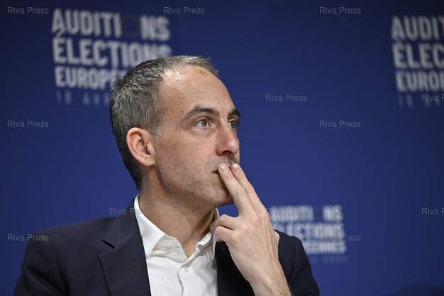Caption : Le MEDEF auditionne les têtes de listes aux élections européennes. Raphaël Glucksmann (PS-Place publique) /// The MEDEF, first network of entrepreneurs in France, is auditioning the heads of the lists in the European elections. Raphaël Glucksmann (PS-Place publique) - Paris - 18/04/2024 - Photo © Lionel Préau +33 (0)6 68 12 83 77