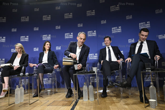 Légende : Le MEDEF auditionne les têtes de listes aux élections européennes. Marion Maréchal (Reconquête) - Valérie Hayer (Renaissance) - Raphaël Glucksmann (PS-Place publique) - François-Xavier Bellamy (LR) - Jordan Bardella (RN) /// The MEDEF, first network of entrepreneurs in France, is auditioning the heads of the lists in the European elections. Marion Maréchal (Reconquête) - Valérie Hayer (Renaissance) - Raphaël Glucksmann (PS-Place publique) - François-Xavier Bellamy (LR) - Jordan Bardella (RN) - Paris - 18/04/2024 - Photo © Lionel Préau +33 (0)6 68 12 83 77