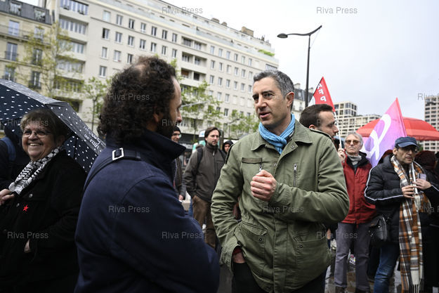 Légende : Rassemblement de La France Insoumise suite aux convocations pour apologie du terrorisme de Mathilde Panot et Rima Hassan. François Ruffin /// Rally of La France Insoumise following the summons for advocating terrorism by Mathilde Panot and Rima Hassan. François Ruffin - Paris - 30/04/2024 - Photo © Lionel Préau +33 (0)6 68 12 83 77