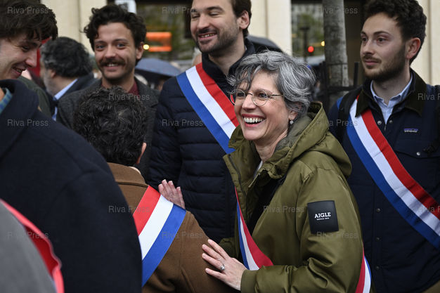 Légende : Rassemblement de La France Insoumise suite aux convocations pour apologie du terrorisme de Mathilde Panot et Rima Hassan. Sandrine Rousseau /// Rally of La France Insoumise following the summons for advocating terrorism by Mathilde Panot and Rima Hassan. Sandrine Rousseau, MP - Paris - 30/04/2024 - Photo © Lionel Préau +33 (0)6 68 12 83 77