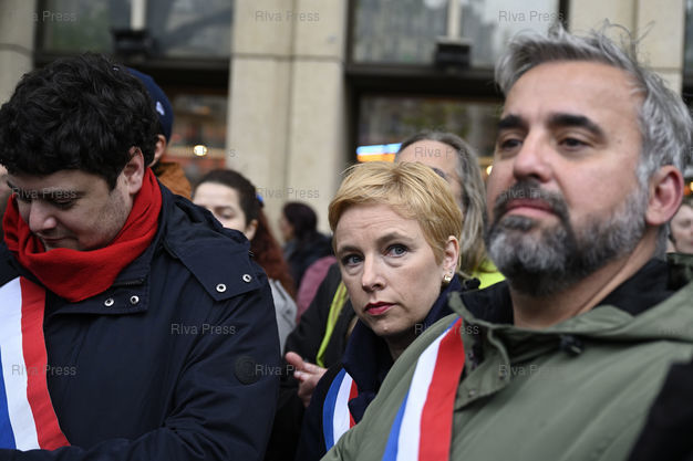 Légende : Rassemblement de La France Insoumise suite aux convocations pour apologie du terrorisme de Mathilde Panot et Rima Hassan. Clémentine Autain et Alexis Corbière /// Rally of La France Insoumise following the summons for advocating terrorism by Mathilde Panot and Rima Hassan. Clémentine Autain and Alexis Corbière, MP - Paris - 30/04/2024 - Photo © Lionel Préau +33 (0)6 68 12 83 77