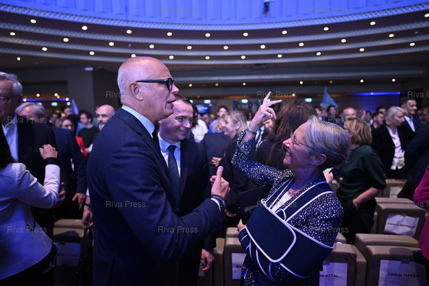 Légende : Meeting de campagne de la majorité présidentielle pour les élections européennes à la Maison de la Mutualité. Edouard Philippe et Elisabeth Borne, anciens premiers ministres /// Campaign meeting of the presidential majority for the European elections at the Maison de la Mutualité. Edouard Philippe and Elisabeth Borne, former Prime Ministers - Paris - 07/05/2024 - Photo © Lionel Préau +33 (0)6 68 12 83 77