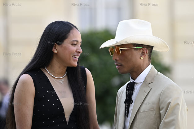 Légende : Dîner d'Etat en l'honneur de Joe Biden et son épouse Jill Biden au Palais de l'Elysée. Pharrell Williams et son épouse Helen Lasichanh /// State dinner in honor of Joe Biden and his wife Jill Biden at the Elysée Palace. Pharrell Williams and his wife Helen Lasichanh - Paris - 08/06/2024 - Photo © Lionel Préau +33 (0)6 68 12 83 77