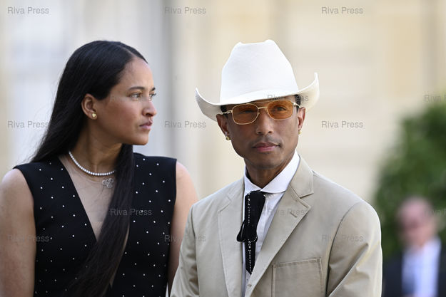 Légende : Dîner d'Etat en l'honneur de Joe Biden et son épouse Jill Biden au Palais de l'Elysée. Pharrell Williams et son épouse Helen Lasichanh /// State dinner in honor of Joe Biden and his wife Jill Biden at the Elysée Palace. Pharrell Williams and his wife Helen Lasichanh - Paris - 08/06/2024 - Photo © Lionel Préau +33 (0)6 68 12 83 77