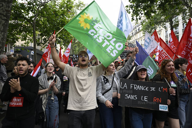 Légende : Manifestation contre l'extrême droite, arrivée largement en tête aux élections européennes, conduisant le Président de la République à dissoudre l'Assemblée nationale /// Demonstration against the far right, which came well ahead in the European elections, leading the President of the Republic to dissolve the National Assembly - Paris - 15/06/2024 - Photo © Lionel Préau +33 (0)6 68 12 83 77