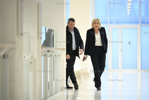 Légende : Procès des assistants parlementaires européens du Front national, devenu Rassemblement national. Marine Le Pen et le RN sont accusés d'avoir organisé un système permettant d'employer des assistants parlementaires européens pour le parti. Marine Le Pen /// Trial of the European parliamentary assistants of the Front National far-right party, which became the Rassemblement National. Marine Le Pen and the RN are accused of having organized a system allowing the employment of European parliamentary assistants for the party. Marine le Pen - Paris - 19/11/2024 - Photo © Lionel Préau +33 (0)6 68 12 83 77