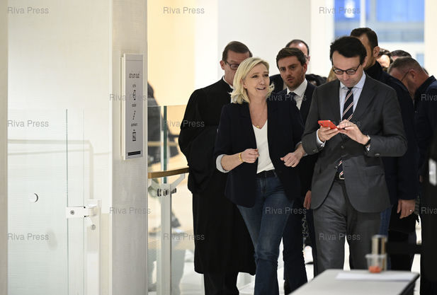 Légende : Procès des assistants parlementaires européens du Front national, devenu Rassemblement national. Marine Le Pen et le RN sont accusés d'avoir organisé un système permettant d'employer des assistants parlementaires européens pour le parti. Marine Le Pen et Renaud Labaye, directeur de cabinet de Marine le Pen /// Trial of the European parliamentary assistants of the Front National far-right party, which became the Rassemblement National. Marine Le Pen and the RN are accused of having organized a system allowing the employment of European parliamentary assistants for the party. Marine le Pen and chief of staff Renaud Labaye - Paris - 27/11/2024 - Photo © Lionel Préau +33 (0)6 68 12 83 77