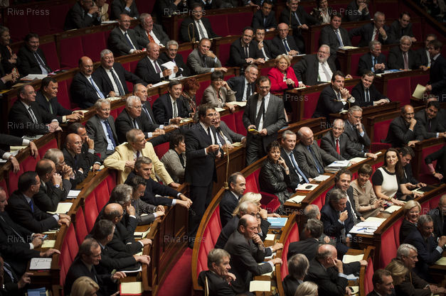 Caption : 16/10/2012 - PARIS, France - Le president du groupe UMP Christian Jacob pendant la seance de questions au gouvernement a l'Assemblee Nationale. /// The head of UMP group Christian Jacob at the French National Assembly in Paris. /// PHOTO Vincent BOISOT/Riva Press