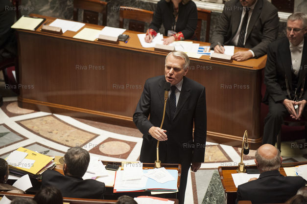 Légende : 16/10/2012 - PARIS, France - Le premier ministre Jean-Marc Ayrault pendant la seance de questions au gouvernement a l'Assemblee Nationale. /// French Prime Minister Jean-Marc Ayrault at the French National Assembly in Paris. /// PHOTO Vincent BOISOT/Riva Press
