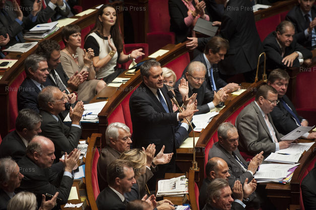 Légende : 16/10/2012 - PARIS, France - Le depute Xavier Bertrand pendant la seance de questions au gouvernement a l'Assemblee Nationale. /// The French UMP deupty Xavier Bertrand at the French National Assembly in Paris. /// PHOTO Vincent BOISOT/Riva Press