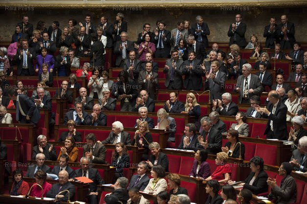 Légende : 16/10/2012 - PARIS, France - Les deputes socialistes pendant la seance de questions au gouvernement a l'Assemblee Nationale. /// French socialist party deputies at the French National Assembly in Paris. /// PHOTO Vincent BOISOT/Riva Press