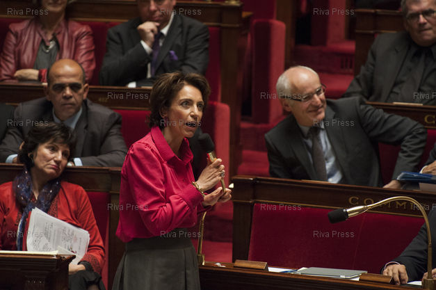 Légende : 16/10/2012 - PARIS, France - La ministre des affaires sociales et de la sante Marisol Touraine pendant la seance de questions au gouvernement a l'Assemblee Nationale. /// French social affairs and health minister Marisol Touraine at the French National Assembly in Paris. /// PHOTO Vincent BOISOT/Riva Press