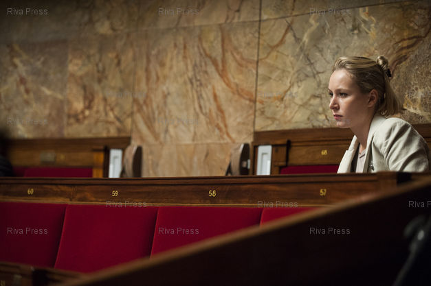 Caption : 16/10/2012 - PARIS, France - La deputee Front Nationale Marion Marechal Le Pen pendant la seance de questions au gouvernement a l'Assemblee Nationale. . /// French Front National deputy Marion Marechal Le Pen at the French National Assembly in Paris. /// PHOTO Vincent BOISOT/Riva Press