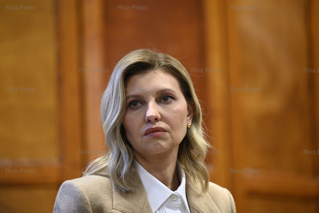 Titre : Olena Zelenska visite une école accueillant des enfants ukrainiens