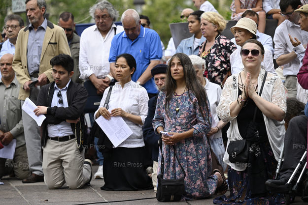 Légende : Procession en l'honneur de l'Assomption dans les rues du Vème arrondissement de Paris par les catholiques traditionalistes de l'église Saint-Nicolas-du-Chardonnet /// Procession in honor of the Assumption in the streets of the 5th arrondissement of Paris by the traditionalist Catholics of the church of Saint-Nicolas-du-Chardonnet - Paris - 15/08/2023 - Photo © Lionel Préau +33 (0)6 68 12 83 77