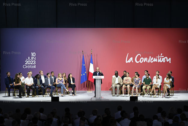 Caption : Premier meeting de "La Convention", mouvement de gauche anti-Nupes lancé en dehors du Parti socialiste par l'ancien Premier ministre Bernard Cazeneuve dans la perspective de la prochaine présidentielle - Palais des sports de Créteil. /// First meeting of "La Convention", a left-wing anti-Nupes movement launched outside the Socialist Party by former Prime Minister Bernard Cazeneuve in view of the next presidential election. - Créteil - 10/06/2023 - Photo © Lionel Préau +33 (0)6 68 12 83 77