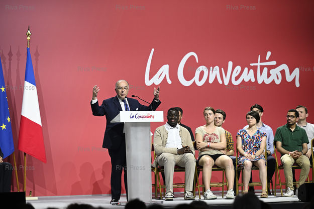 Légende : Premier meeting de "La Convention", mouvement de gauche anti-Nupes lancé en dehors du Parti socialiste par l'ancien Premier ministre Bernard Cazeneuve dans la perspective de la prochaine présidentielle - Palais des sports de Créteil /// First meeting of "La Convention", a left-wing anti-Nupes movement launched outside the Socialist Party by former Prime Minister Bernard Cazeneuve in view of the next presidential election - Créteil - 10/06/2023 - Photo © Lionel Préau +33 (0)6 68 12 83 77