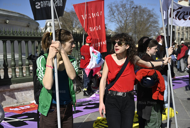 Légende : Les professionnels du secteur culturel en grève manifestent à l'appel de l'Intersyndicale du spectacle vivant pour dénoncer une politique d’austérité /// Cultural sector professionals on strike are demonstrating at the call of the Intersyndicale du spectacle vivant to denounce an austerity policy - Paris - 20/03/2025 - Photo © Lionel Préau +33 (0)6 68 12 83 77