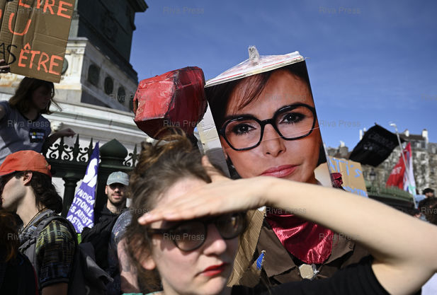 Légende : Les professionnels du secteur culturel en grève manifestent à l'appel de l'Intersyndicale du spectacle vivant pour dénoncer une politique d’austérité. Portrait de Rachida Dati, Ministre de la culture /// Cultural sector professionals on strike are demonstrating at the call of the Intersyndicale du spectacle vivant to denounce an austerity policy. Portrait of Rachida Dati, Minister of Culture - Paris - 20/03/2025 - Photo © Lionel Préau +33 (0)6 68 12 83 77