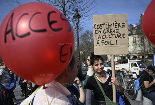 Légende : Les professionnels du secteur culturel en grève manifestent à l'appel de l'Intersyndicale du spectacle vivant pour dénoncer une politique d’austérité /// Cultural sector professionals on strike are demonstrating at the call of the Intersyndicale du spectacle vivant to denounce an austerity policy - Paris - 20/03/2025 - Photo © Lionel Préau +33 (0)6 68 12 83 77