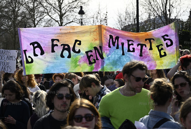 Légende : Les professionnels du secteur culturel en grève manifestent à l'appel de l'Intersyndicale du spectacle vivant pour dénoncer une politique d’austérité /// Cultural sector professionals on strike are demonstrating at the call of the Intersyndicale du spectacle vivant to denounce an austerity policy - Paris - 20/03/2025 - Photo © Lionel Préau +33 (0)6 68 12 83 77